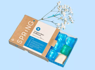 Alors quand j'ai lu les arguments de Spring : “une lessive clean, efficace dès 20°, sans plastique, livrée dans ta boîte aux lettres”, j’ai haussé les épaules.